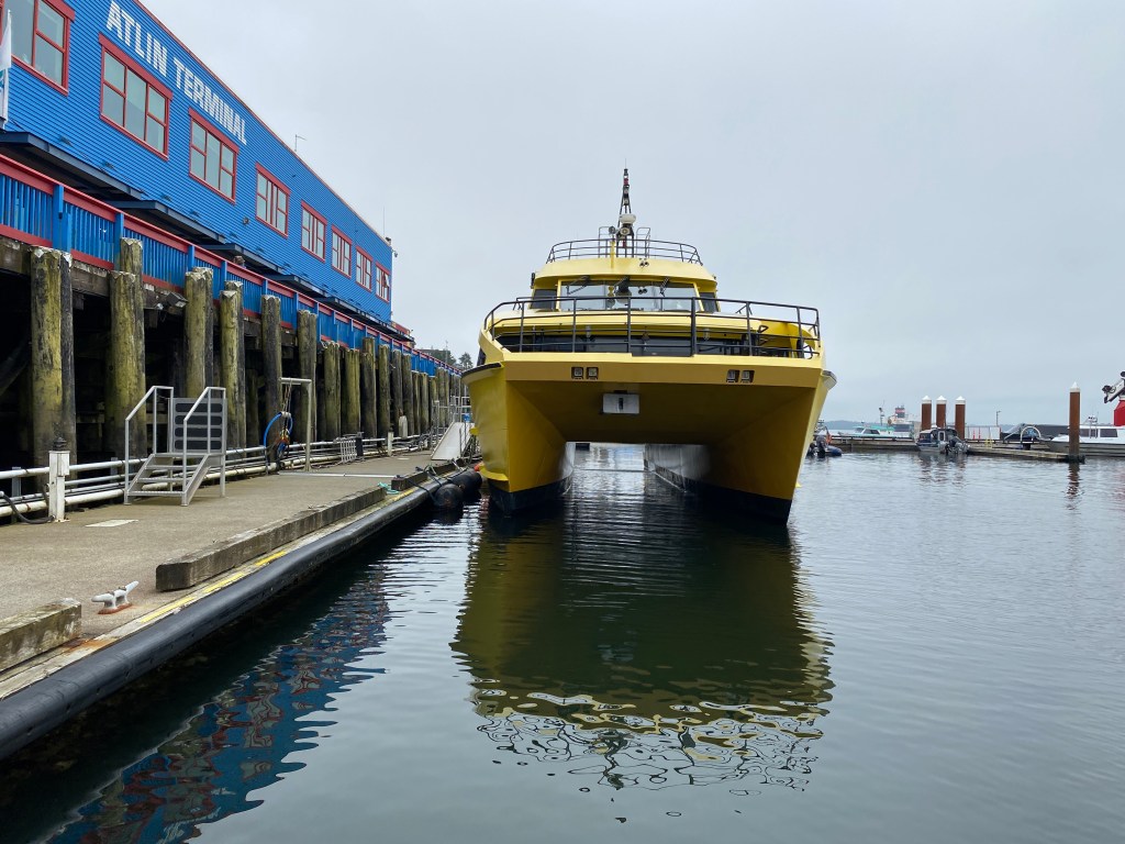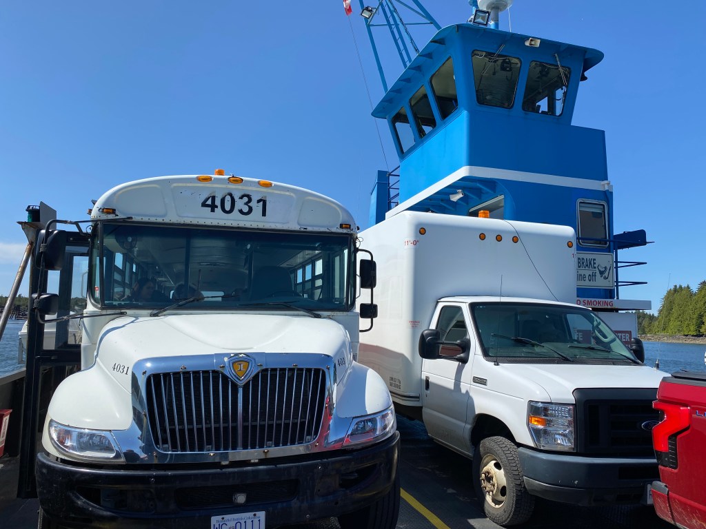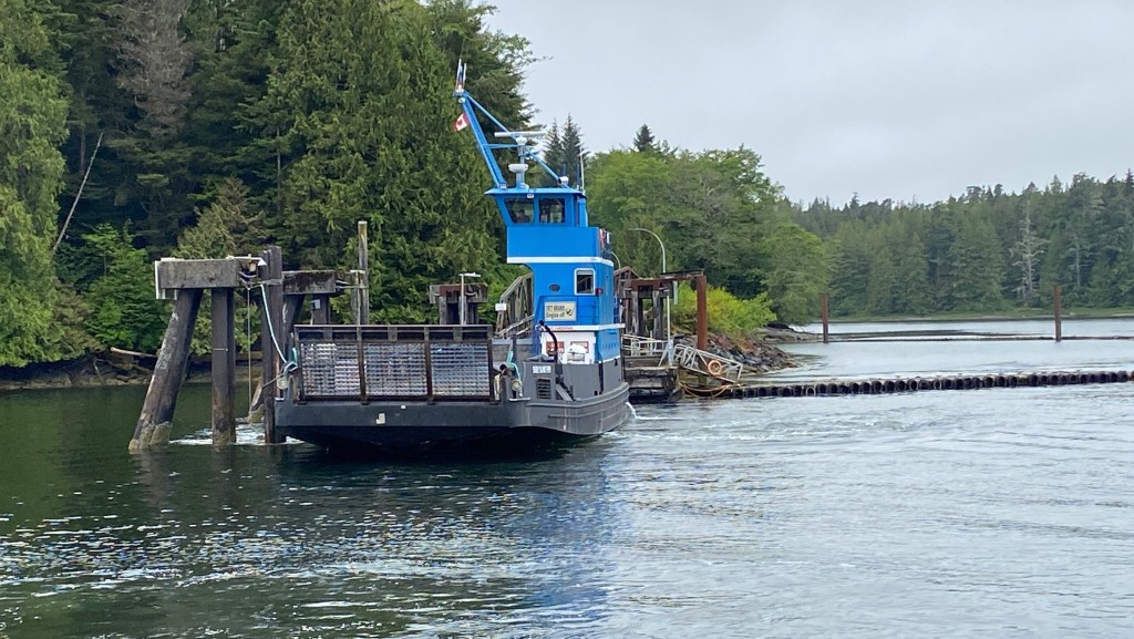 The bus / truck entourage then boards a flat barge ferry and you are then whisked across Prince Rupert Harbour to Kaien Island where Prince Rupert is located.