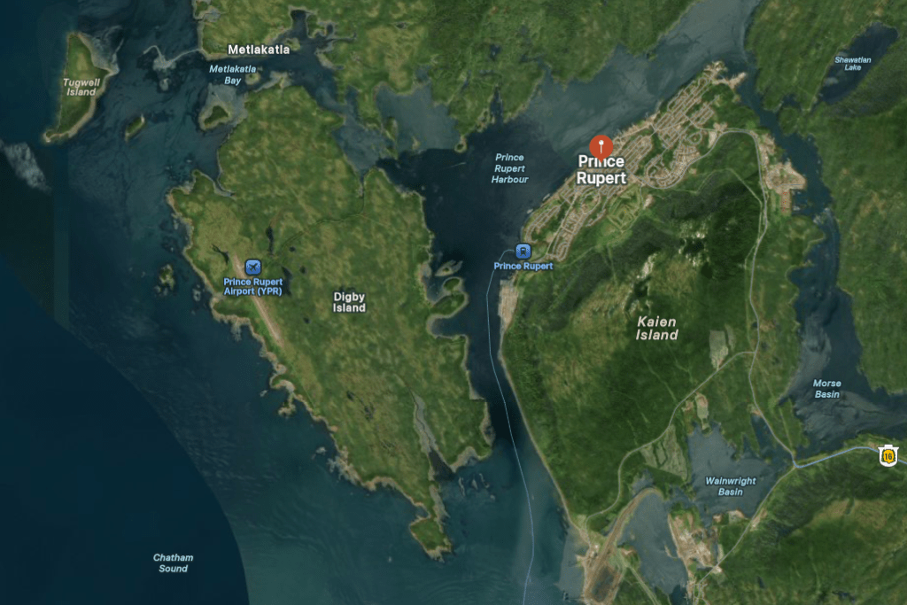 YPR (Prince Rupert Airport) is located on Digby Island and is 5 nautical miles from the city of Prince Rupert. A ferry must be taken from YPR to Prince Rupert, which is included in your airline tickets.
