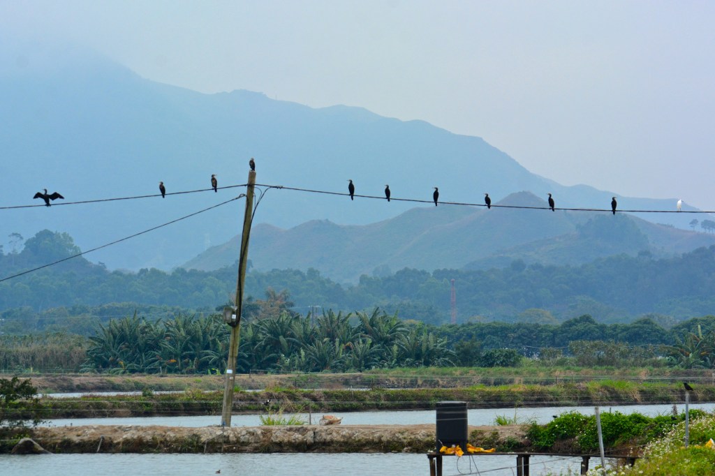 We had to purchase train tickets from Kowloon Station to the Airport in order to use the luggage transfer service, but it was well worth it.  As Matt was going to pick up his sister from the airport, he offered to drop off us at the end of the tour.  We now have train tickets as souvenir for our travel room 😉  After dropping off our luggage at the very efficient Kowloon Station, Matt met us ~ 09:00 am and then the fun began!   Matt is a super birder and a wealth of information on the history of the Hong Kong and the New Territories.  He drove us all over the place in search of birds in varying landscapes from country parks to fish ponds.
